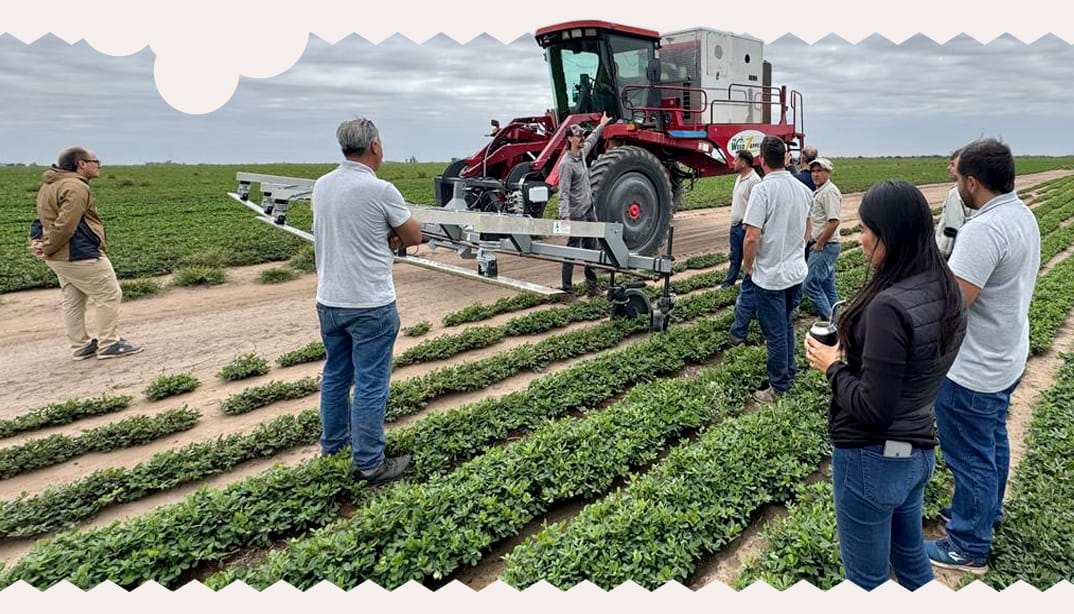 El equipo técnico de Producción Primaria asistió a una demostración de maquinaria que controla malezas a través de descargas eléctricas en el lote.